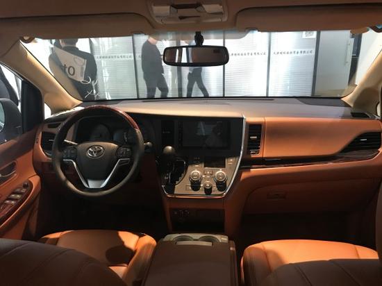 丰田塞纳内饰方面:丰田塞纳的方向盘很精致而且握感厚实大小适中,并且带有电动调节功能。由于广泛的采用了吸音的材料,能提供最佳的乘座舒适性。中控台相比老款设计更加简洁时尚。最新款配置摒弃了沉稳风格,转而运用大量的常被装饰在跑车或SUV车内的碳纤维作为设计亮点,舒适度也跟着大幅度饱和。非常高端。