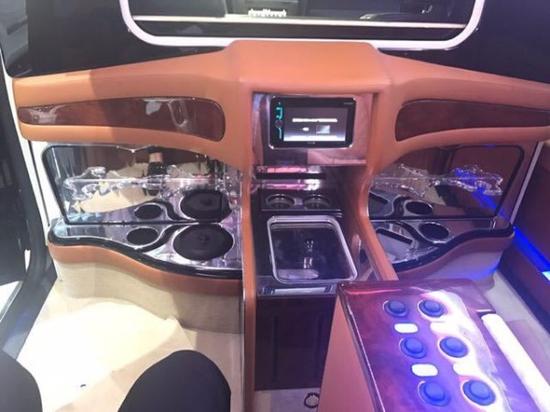 林肯外交官内部还有桃木酒吧,卫星电视,高清DVD,航空按摩座椅,5.2声道BOSS音箱给您提无尽视听享受。林肯外交官配合商务会议,林肯外交官还专门为您准N备了美国原装进口的隐私玻璃、隔离冰槽、香槟酒槽、香槟酒杯、水晶高脚杯、水晶带塞玻璃瓶等名贵设施。