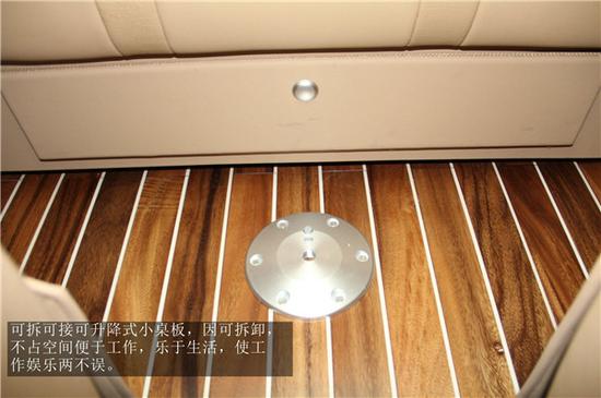 车内还设有一个小型的会议桌,并配备了杯托和储物盒,在不需要的时候可以收起,不影响乘坐空间。硬朗稳健的姿态,昂首阔步的气势,车内乘客皆被它的自信优雅所感染。