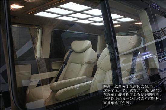 内饰方面,前后舱采用简约大气的T型隔断,此隔断为坐在第二排航空座椅的乘客腿部预留更多空间活动更自由。而且其美观度高,受到了boss们的青睐。