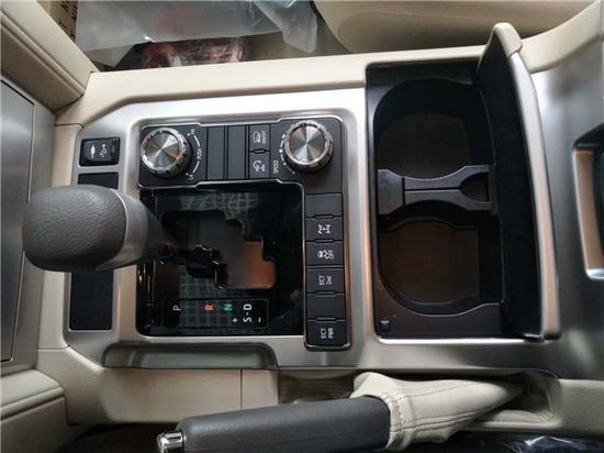 2018款丰田兰德酷路泽4000中东版丐版车内上深下浅的新色系搭配,让整个车内相比老款车型温馨的不少。特别是桃木饰条的加入使得车内看起来更“丰田”。