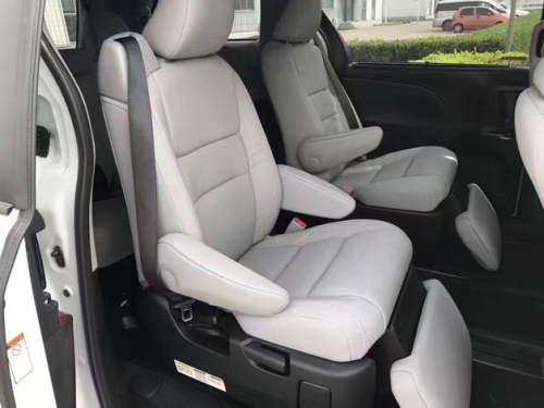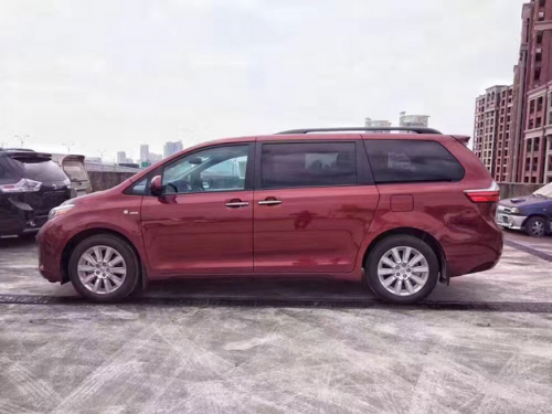 新2018款丰田塞纳外观前卫时尚,配之以低重心的车身,营造了强烈的视觉冲击力。新车前进气格栅采用蜂窝状结构,并采用熏黑前灯组,同时前保险杠也采用铲型样式。上海金贸之星新到店18款丰田塞纳商务车,内饰方向盘精致且握感厚实,大小适中,并且带有电动调节功能。塞纳整体形象相当坚挺,18寸轮胎在MPV车型中确实很厚道这点值得肯定。