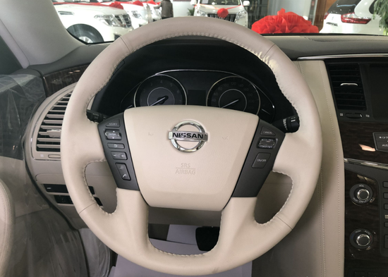 18款日产途乐Y62全新途乐采用了豪华轿车惯用的四幅风向盘设计,粗细比较合手再加上真皮加实木的用料,手握感觉极佳。另外方向盘功能强大,集成了音响、空调控制及蓝牙车载免提系统,使驾驶者在行车中更为安全,做到手不离方向盘。同时方向盘加热功能,令驾驶者双手在寒冷的冬季也能得到最佳的呵护。