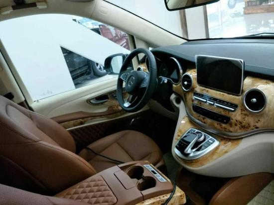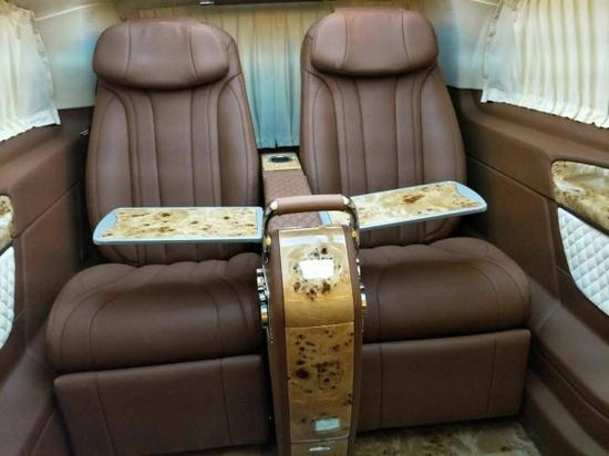 奔驰V260L商务车改装健伍音响、32寸电动升降式液晶大屏以及下置吧台为商务娱乐的主体,配备有进口胶囊咖啡机与蓝光玻璃酒柜这一类生活性的应用,满足日常的商务休闲需求。座椅边上安置着车厢的小型控制面板,车厢边缘近座椅处,可放置酒杯饮料的凹槽和隐藏储物柜,都是随意伸手可触。
