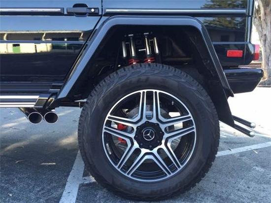 2017款奔驰G550 4×4²离地间隙高达17.2英寸,比正常的7.3英尺的SUV增加了7.9英寸。奔驰G550 4×4²悬挂设置两个阻尼器和两个弹簧,前线轨道宽度增加了9英寸,后桥长达10英寸。搭载4.0升twin-turbov - 8 G550发动机,可以提供高达416马力,最大450牛米扭矩。