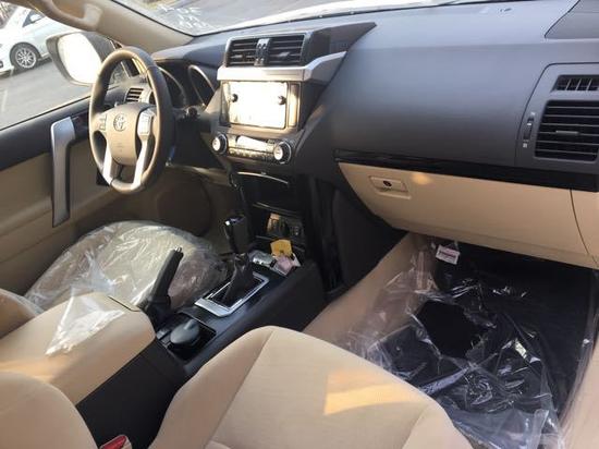 2017款丰田普拉多 (配置|询价)现车配置:金属漆,九气囊,小屏,卤素大灯,18轮,外挂备胎,镀铬饰条,天窗,自动空调,差速锁,下坡辅助,防侧滑,冰箱,6速,智能卡,一键式启动,胎压监测,主副驾驶电动座椅,多功能方向盘 巡航定速 雾灯 现车手续齐全,随车走,可办理分期付款。