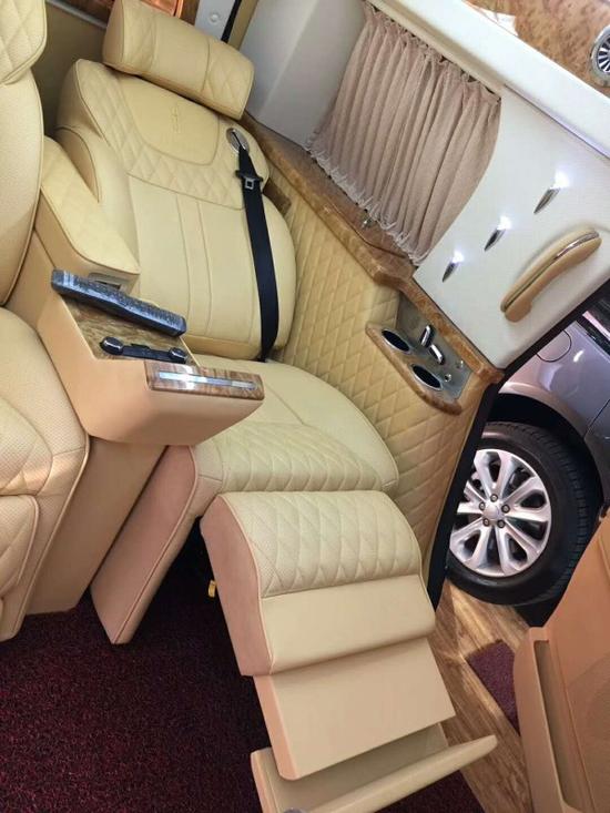 林肯领袖一号的乘客舱则是拥有着两个宽大舒适的座椅,并且带有八项可以调节的功能,比如说多种按摩功能、通风功能、电加热功能等等,而在窗户上方则拥有着7寸可触摸屏幕,大家可以自行进行调节,并且按摩座椅还搭配有脚托设计,满足大家对于商务车的全部需求。