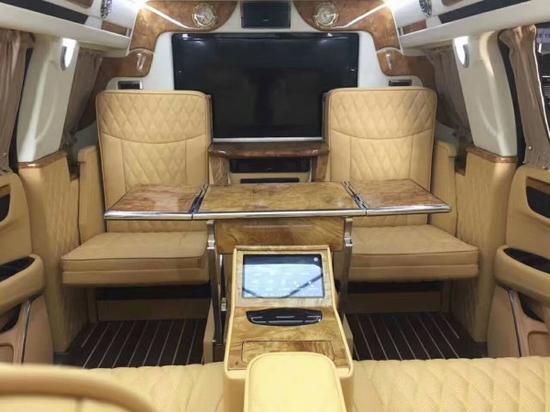 18款凯迪拉克凯雷德总统一号加长5.7米, 6.2L V8 发动机,8速变速箱,4轮驱动,主动调节悬挂体系,电子转向体系,拖车体系,前舱bose环绕立体声音响,主动噪音消除,收音机、CD、MP3,高清卫星收音机,卡迪拉克CUE体系及8寸导航屏幕,蓝牙体系,12英寸可构建显现及驾驶员信息中心,抬头显现,皮质方向盘,加热方向盘,方向盘带操控中心,按键发动,遥控发动,无钥匙便利进入,12方向皮座椅,加热、通风前座椅,第二排座椅加热、电动可翻倒,四门电动窗、前排可一键上下,前后独立操控舒适空调体系,电动可折叠带加热及转向灯的反光镜,雨量感应雨刷,主动远光前灯,前后停车辅佐,电动掀起和划动天窗,22寸铝合金轮毂,电动可调整敞开视点尾门,双级敞开气囊,头胸部气囊,主动稳定带循迹体系,胎压监控,环影体系,防盗体系,盲点警示,后车流警示,驾驶员警示包。后舱6向高档德国Napa真皮航空座椅带加热及气动按摩,舒适腿托,4区域高档气氛灯,可独立操控,梦幻满天星,V型海燕日光模拟灯光效果,梦幻蓝夜间气氛灯,7寸智能中心操控触摸屏,操控后舱所有电子及电动设备,高档隐藏式秘书。咨询热线:15811007765
