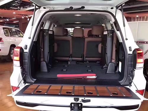 内饰方面:丰田酷路泽 5700仪表盘、方向盘和排挡等位置均配以桃木装点,尽显豪华质感。中控台采用了色调更浅的金属饰板,视觉感受更加年轻。丰田酷路泽5700整个操控区域 色调为深色系,仪表盘、偏向盘和排挡等位置均配以桃木装点,尽显豪华质感。不光具有DVD导航,这款车的倒车影像还可以显示在内后视镜上;中央扶手箱还装 备了冷藏箱,这些都与中规版车型有所差别。