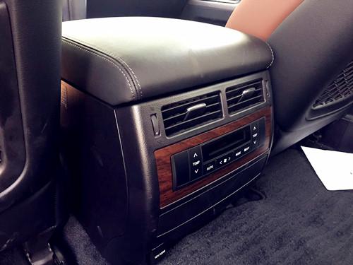后排带有娱乐显示屏幕和晾衣架,后排出风口控制区带有桃木装饰,做的非常的精致。