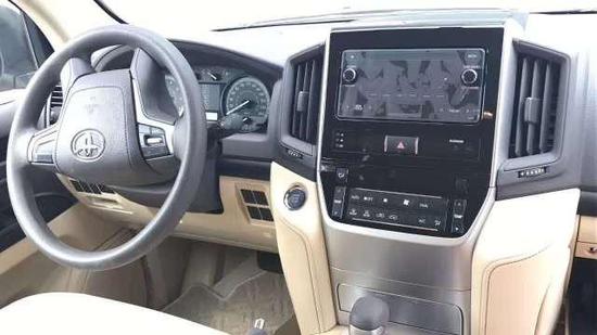 兰德酷路泽相比老款车型有着较大的改变,中控台的线条笔直、干练,搭配着中控台上的大尺寸液晶显示屏,让其更加的有科技感。尽管没有中控大屏,也没有液晶仪表盘、抬头显示等等高级设置,特别版兰德酷路泽的整体设计和用料及装配水平,仍然是可以接受的,触感舒适,拼缝整齐,丰田的人机工程设计也让人放心。中央扶手箱位置都安装了车载冰箱,尽管是低配版本,这项来自中东版的福利配置,还是没有舍掉。