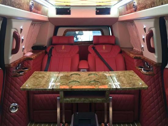 2018款林肯领袖一号电动桌板升降起来,这是我们工厂独有的设计,进口于台湾,我们工厂已申请专利,外面你看到的林肯领袖一号如果有这样的设计桌板,那一定是我们工厂出去的车子,那么价格上我可以给到你出厂价,请放心选择我们厂家。