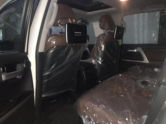 2018款中东版酷路泽5700VXR顶配后排娱乐系统是必须配备的,而且带有晾衣支架,以及前脸流水灯和实木工具盒,只有17款酷路泽5700顶配VXR才带有的配置,虽是小细节,但是起到的是画龙点睛的作用。