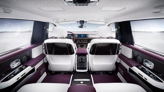 全新幻影内饰奢华,中控台采用全新浮雕式设计,配备三辐式多功能方向盘、数字化液晶仪表盘以及大尺寸可升降的信息娱乐显示屏。还配备有环绕式加热系统,而被消费者看重的后排豪华座椅还可支持电动加热、通风功能及任意角度调节。此外,包括酒柜、后排影院系统、冷藏式冰箱以及电动桌板也配备在新车上。
