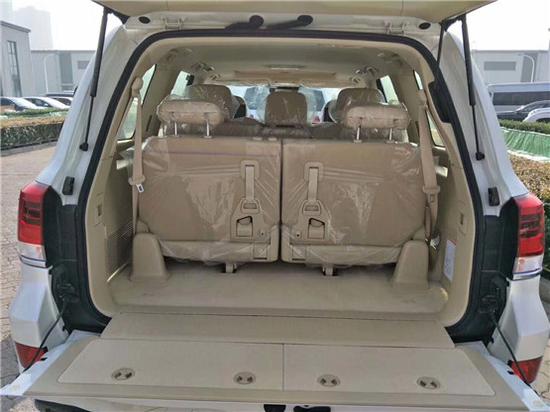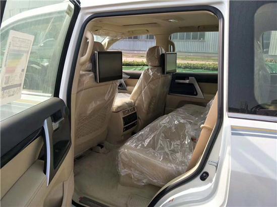 17款丰田酷路泽5700车内乘坐、载物空间均极为优秀。新车型在屏幕色彩和界面设计上,基本都向新的雷克萨斯LX (配置|询价)看齐。大量泛金属光泽饰条的采用,大大增强了运动感和时尚感。车内座椅均为真皮打造,第一排座椅:电动、可调节;第二排座椅:带头枕、可折叠、中央扶手。操控区域色调为深色系,仪表盘、方向盘和排挡等位置均配真皮装饰,尽显豪华质感。不但具有DVD导航、而且配置了360度环车影像;中央扶手箱还装备了冷藏箱,这些都与中规版车型有所不同。
