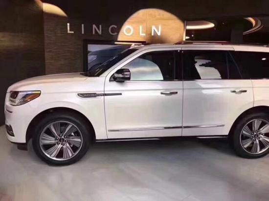 2018款林肯领航员 (配置|询价)接受预订,加长铂金版顶配,四驱3.5tt发动机,10速变速箱,450匹马力,全景天窗,七座,液晶仪表,带记忆主副驾驶座椅30项调节,重度拖车套件,电动折叠发光踏板,电动折叠防炫目后视镜,22寸21条幅黑色熏黑涡轮轮毂,轮毂锁,电子限滑差速器,科技包,全季节脚垫,后娱系统,20扬声器revel音响系统,sync3系统,前座椅通风,后座椅加热,第三排座椅电动调节,隐私玻璃,电动后尾门,360环影,并道辅助,氙灯LED,无钥匙进入,远程遥控启动,自适应巡航定速,密码锁,桃木内饰,车内可调氛围灯,后视镜林肯投影灯,方向盘加热,多功能真皮方向盘等。