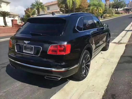 17款宾利添越车身侧面,前翼子板上的通风口以及贯穿前后的腰线、隆起的后轮拱和飞驰线等经典的宾利家族设计风格一应俱全,让人一眼就能看出这是一台宾利品牌的车型。