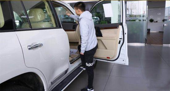 兰德酷路泽的离地间隙较高,为方便乘客上车,A柱上设计了一个拉手,配合下方的脚踏板,即便身材不高的乘客也能轻松上车。