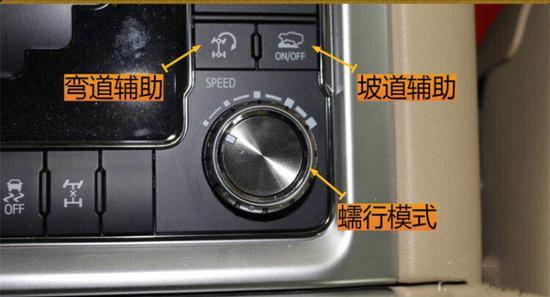 配备的弯道辅助功能,在转向时它能将内侧后轮锁死,从而减小转弯半径,旋钮功能为扭矩放大,在车辆被陷时能有效帮助车辆脱困。