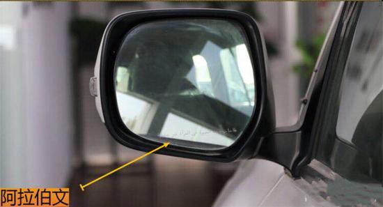 外部后视镜面积很大,作为中大型SUV,这样比较大的后视镜很实用,而且还有电动折叠功能。作为中东版车型,后视镜上的标记很容易辨认。