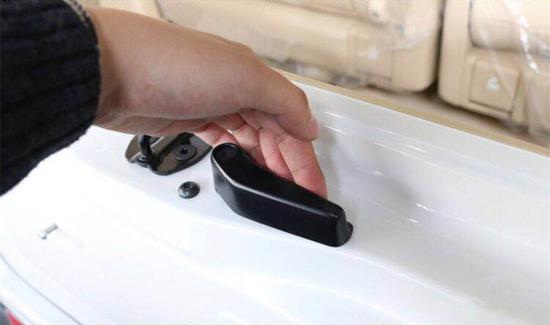 后备箱下部分的开启方式为扳手式,这样的操作比较方便,即便是女士也能轻松完成。