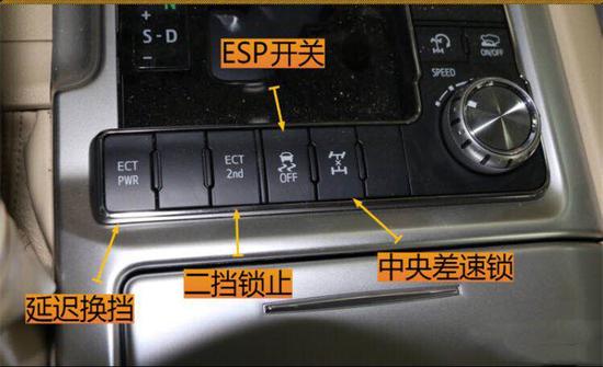 中控台采用大量软性材质包裹,摸起来比较舒适,这点比不上一些豪华品牌车型,不过就兰德酷路泽的定位来说这样的设计是很符合的。