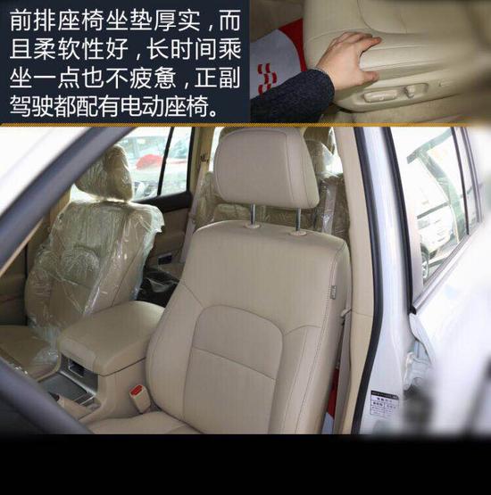 前排座椅坐垫厚实,而且柔软性好,长时间乘坐一点也不疲惫,正副驾驶都配有电动座椅。