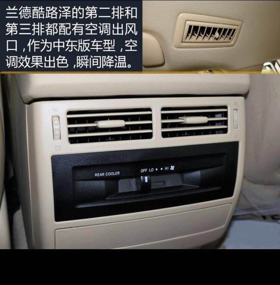 兰德酷路泽的第二排和第三排都配有空调出风口,作为中东版,空调效果出色,瞬间降温。