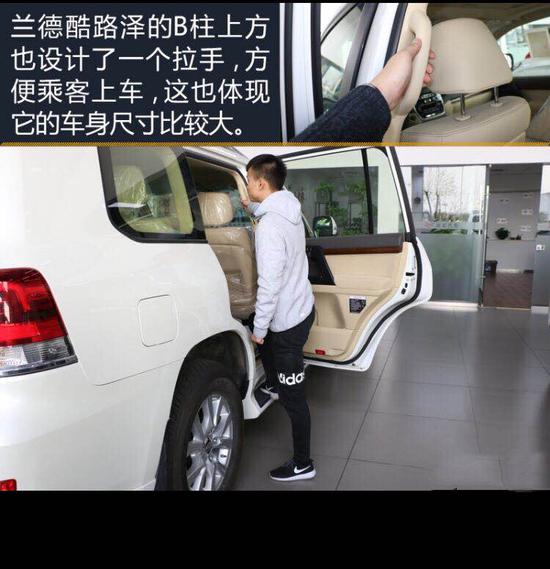 兰德酷路泽的B柱上方也设计了一个拉手,方便乘客上车,这也体现它的车身尺寸比较大。
