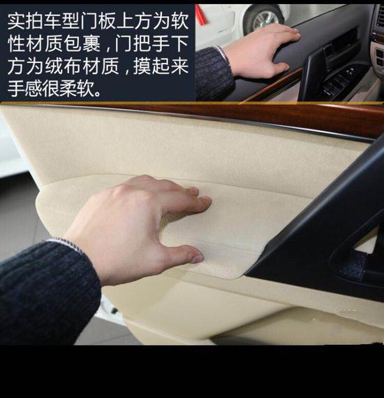 门板上方为软性材质包裹,门把手下方为绒布材质,摸起来手感很柔软。