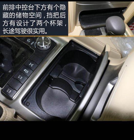 前排中控台下方有个隐藏的储物空间,档把后方有设计了两个杯架,长途驾驶很实用。