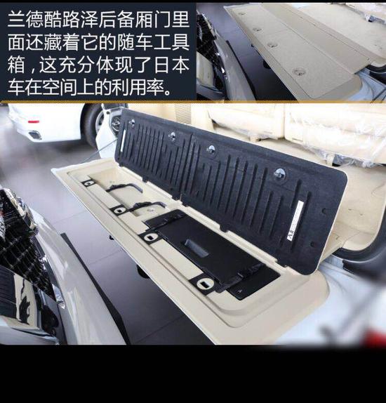 兰德酷路泽后备箱门里面还藏着它的随车工具箱,这充分体现了日本车在空间上的利用率。