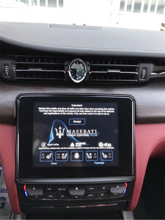 坐到驾驶席,一股“成功人士”的自豪感油然而生。胡桃木的装饰板和全黑内饰搭配,整体风格很运动,配合上手工的缝线,完美地诠释了总裁极度精致的细节和手工技艺。玛莎拉蒂总裁更注重前排乘客的感受,三幅运动化方向盘,经典的换挡拨片、中控台立式石英钟、金属油门刹车踏板、舒适的皮质司机座椅,倾注了大量的精力使得端坐在方向盘后的VIP更加享受。