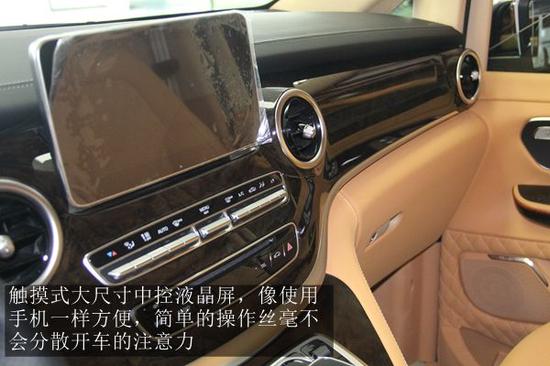 内饰方面,前后舱采用简约大气的T型隔断,此隔断为坐在第二排航空座椅的乘客腿部预留更多空间活动更自由。而且其美观度高,受到了boss们的青睐。吧台上方隔断高清电视,下方的控制屏能够控制车内的电器,影音设施配套齐全,在奔驰V260L的车内也如在家里一般随意而享受。奔驰V级 (配置|询价)商务房车,全新内饰阐释豪华商务的风格!