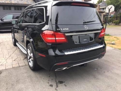 2018款美规奔驰GLS450颜色配置:黑色外观,咖色内饰,金属漆,P01包(环境氛围照明、前排发光迎宾踏板、车道跟踪组件/变道及盲点辅助、智能钥匙、硬盘导航、带记忆功能的前排座椅),全景天窗,外观包(20寸双五幅轮毂,发光脚踏),灯光包(双鹰眼氙灯带随动转向,LED日间行车灯,自适应远光灯),停车辅助包(环车影像,前后电眼),电吸门,哈曼卡顿音响,二排座椅电动,二排遮阳帘,方向盘加热,发光星标,拖车钩,镀烙包,杨木内饰,后排娱乐预留。