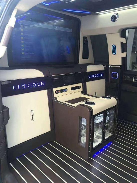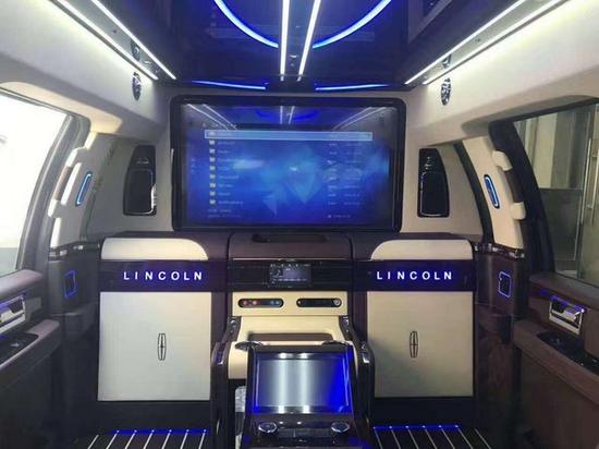 林肯领袖一号大型的镀铬直瀑型水箱罩与锲头灯视觉感受十分霸气。车头的立标又让人想起了经典的林肯城市以及旗下众多声名显赫的豪华房车。车尾的设计显得普通了一些,方方正正,非常稳重,整体的视觉感受气派又稳重。车内颜色灯亮起,各种颜色营造出梦幻般得空间感。