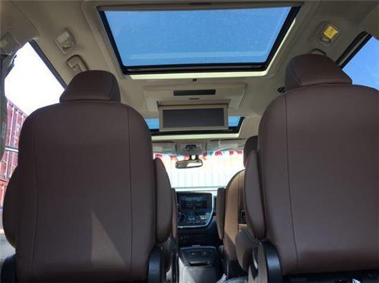 17款赛纳3.5,两驱XLE,18轮,7座,7寸触摸屏,定速巡航,前雾灯,后电眼,倒影,第三排手动座椅,备胎,音响6声道mp3,可滑动天窗,原厂真皮座椅,第二排座椅带腿托,前排座椅加热,智能卡,一键启动,主驾驶8向座椅调节,副驾驶4向座椅调节,多功能方向盘,镀铬门把手,行李架,电动门,电尾门,遮阳帘,隐私玻璃。