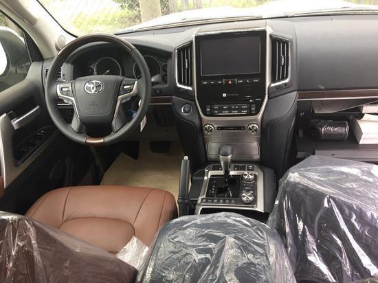 2018款酷路泽5700VXR顶配配置: 8速,8座,真皮座椅,座椅通风带记忆,JBL高级音响,12气囊,底盘升降,360度环影,蠕行系统,并到辅助,车道保持,8速变速箱,差速锁,桃木内饰,桃木方向盘,20轮,氙气大灯,全车镀络,四门智能卡小尾翼,前后电眼,后视镜折叠,KDSS悬挂系统冰箱,后排娱乐。行李架,脚踏,(雷达测距,防碰撞预警,电尾门,实木工具箱,二排衣架,流水转向灯 )