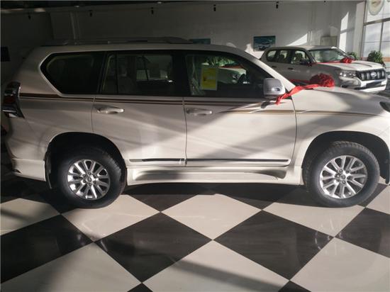 超低价格!!17款霸道2700VX版本 小改款先定先得!晚了拍大腿吧!配置:17款中东霸道2700 后挂备胎,9气囊,天窗,18铝轮,彩条,桃木内饰,炫彩仪表,前排电动座椅,氙灯LED,大灯清洗,自动空调,CD屏,定速,七座,多功能方向盘,冰箱,电动折叠后视镜,航踏,车身稳定,胎压监测,迎宾灯,防水丝绒座椅,全车镀铬,前后大包围