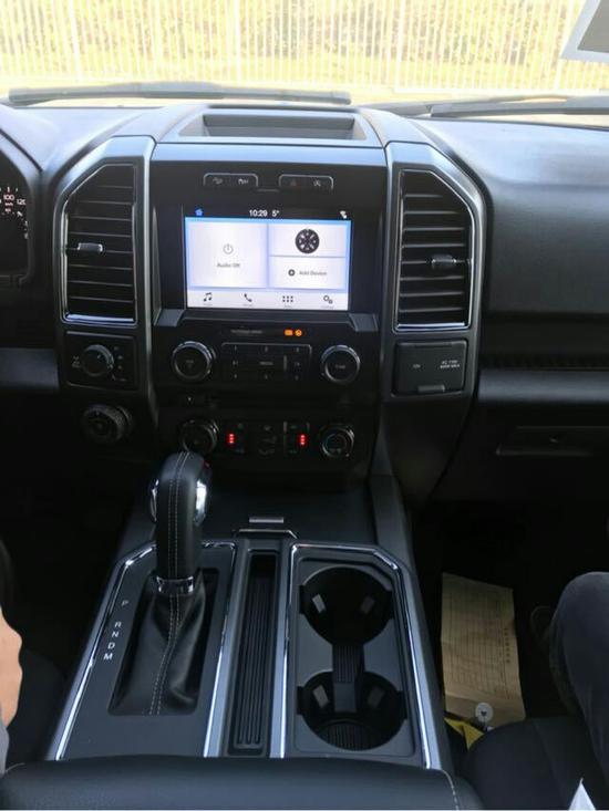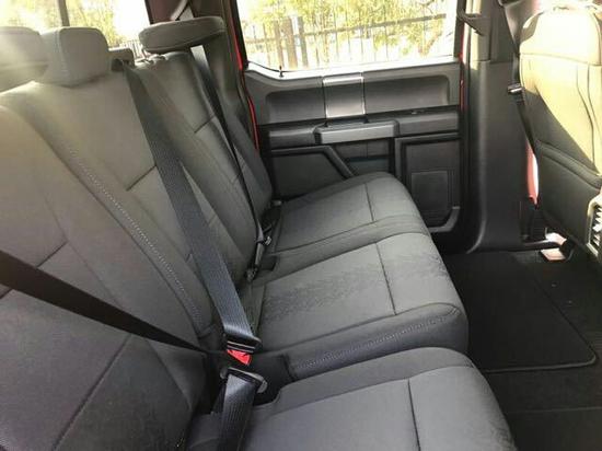 福特猛禽F150内饰采用独特的中控台和门饰板面漆和真皮包裹的方向盘。中控台部分辅以银色饰板装饰,六指针仪表盘的设计有些后工业时代的复古风格。采用带电冷热功能的可记忆式皮革座椅,头枕四向可调,搭配铝饰条和黑色钢琴烤漆内饰。可电动升降的后窗带隔板和电热除霜功能。进口17款福特猛禽F150皮卡真皮座椅包裹性很强,无论是越野还是长途旅行,都很舒服,丝毫不感觉到这大家伙的压抑,二排空间也是十分宽敞,乘坐四个身材高大的乘客绝对没问题。座椅折叠起来可以放一个冰箱,而且门上储物格空间也是够用,虽然不像公羊后排那么豪华,有简易床,但是这种实用的理念就是福特的宗旨。
