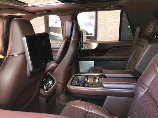 2018款林肯领航员内部还有桃木酒吧,卫星电视,航空按摩座椅。配合商务会议,2018款林肯领航员还专门为您准备了美国原装进口的隐私玻璃。