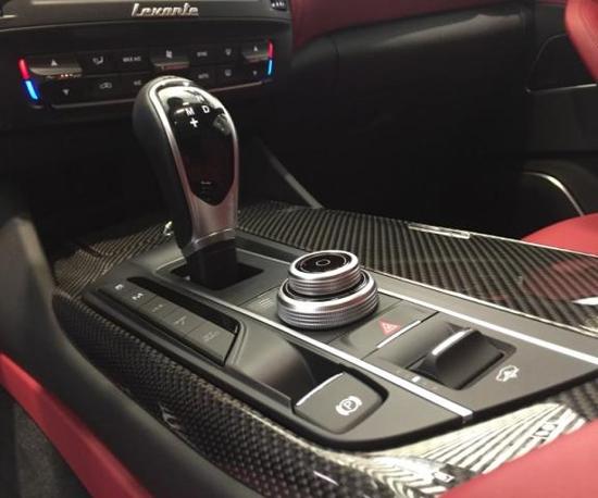 内饰方面:全新一代玛莎拉蒂莱万特和进入到国内的两款车型均标配全景天窗,感觉上炫了 不少。除了采用触屏操作以外,挡把后方的旋钮和按键组合同样可以操作中控大屏功能,十分方便。