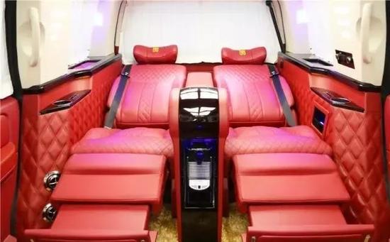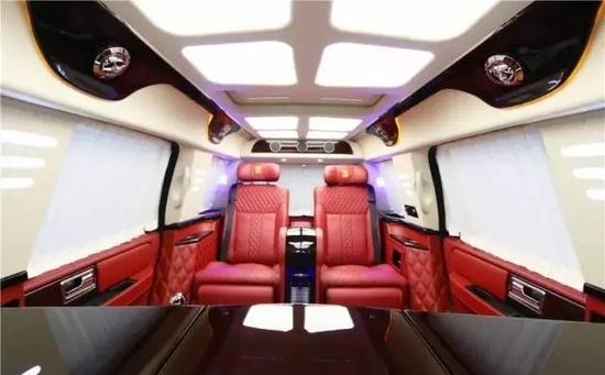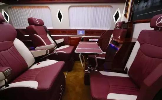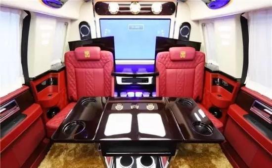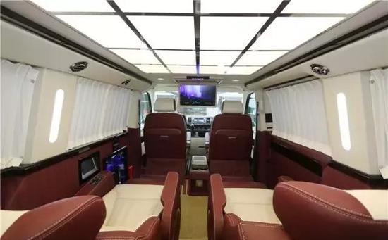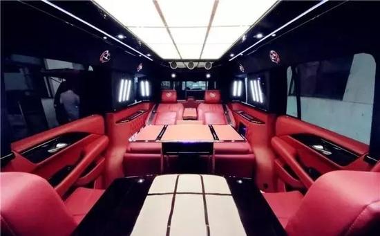 宽阔的乘坐空间足以让您尽享总统般的待遇,米色、酒红色内饰,真皮与桃木内饰,高雅而奥秘。设备一应俱全,车内集成酒吧台,办公桌,打印机,液晶显示器等,真皮桃木内饰,高档地毯,高档豪华的异域吧台,带来梦通常的境地。
