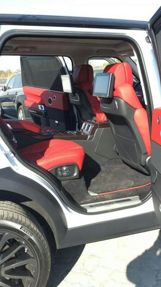 17款路虎揽胜5.0创世加长 白/红 电议优惠现车配置创世包,四座,滑动全景 液晶仪表盘,新款10.2寸屏,桃木加热方向盘,抬显,高级音响,22寸刀锋轮,前后通风,前后加热,前后按摩座椅,前后冰箱,四区空调, 10.2寸后排娱乐,电吸门,二代地形 氙灯+LED灯+大灯清洗+雾灯,智能卡,脚感电尾,鹿皮顶,前后电眼,环影,倒影,并道,后排电动遮阳帘,自动泊车,22项电动座椅调节,隐私玻璃,导航,底盘升降,巡航,防炫目后视镜,电动折叠后视镜。