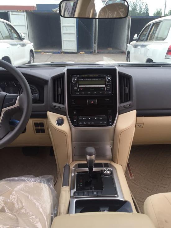 2017款丰田酷路泽4000顶配升级为真皮座椅,除了符合中东地区的需求外,也越来越符合中国人的口味,内饰颜色不再为单一的米色内饰,也增加黑色内饰,中控台换成了具有磨沙手感的金属板件,增强了内饰的质感。上方为多功能显示屏,中间为音响控制系统,左右两侧为空调出风口和空调温度控制按键。