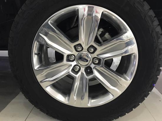18款福特F150 3.5T XLT最新的轮毂是把可靠的传统轮毂和防脱圈的轮毂结合起来了。这款防脱圈轮毂可以保证在轮胎气压较低的情况下,轮胎不会脱离轮毂,因为我们去沙漠的时候往往要降低胎压。猛禽的轮毂最为独特,因为它从传统轮毂转换到防托圈只需要客户拔去标准螺栓,从其常规位置卸下轮胎然后从可锁位置重新安装轮胎,再装防脱圈螺栓。