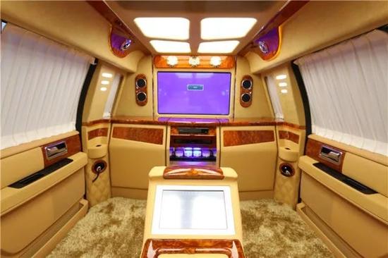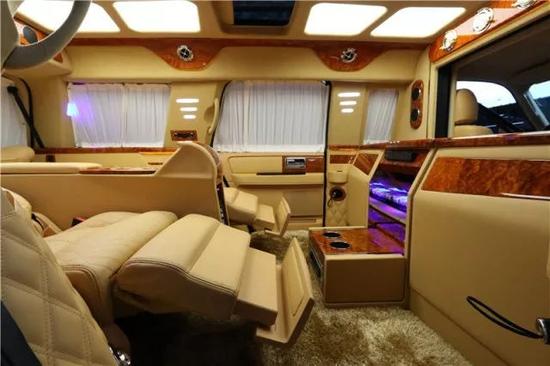 凯迪拉克总同一号内部为4 2座计划,前排为电动折叠座椅,座椅收起跟中央多功效实木吧台融为一体,构成更大吧台。后排为2个自力的电动推拿座椅带 透风、加热 推拿 腿托 靠背放同等。搭客舱悉数的电器扫数集成在后排座椅中心小吧台的屏幕上,操作轻易简单。全车都采取酒赤色真皮包裹,档次和奢华水平无可相比。平安方面,防弹后尾门为您保驾护航。