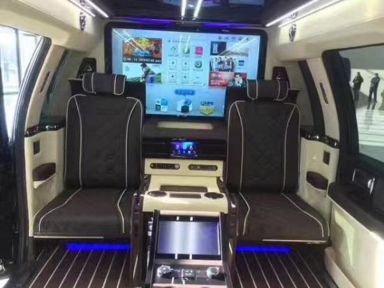 林肯领袖一号的乘客舱则是具有着两个广大舒适的座椅,而且带有八项能够调理的功用,比如说多种按摩功用、通风功用、电加热功用等等,而在窗户上方则具有着7寸可接触屏幕,我们能够自行进行调理,而且按摩座椅还调配有脚托设计,满意我们对于商务车的悉数需求