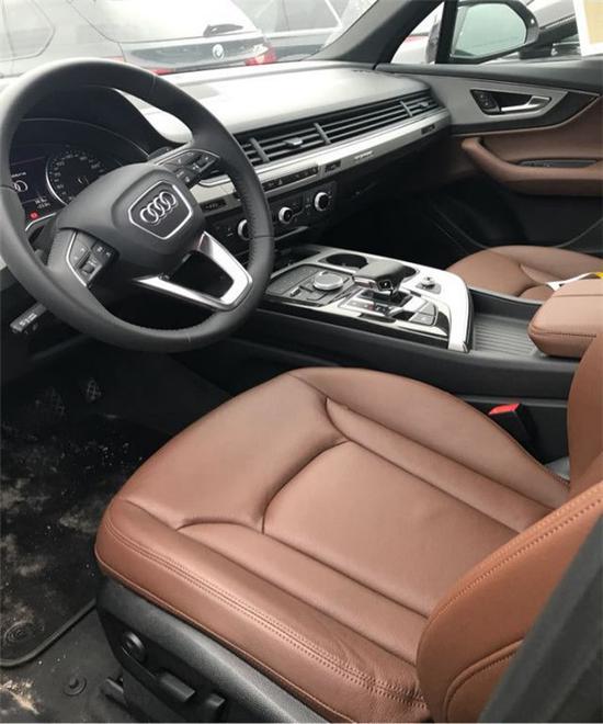 2017款奥迪Q7的内饰造型是典型奥迪风格,材质高档、做工精细,真皮座椅和方向盘、深棕色木纹装饰的点缀都体现出了低调的豪华感。还有仪表盘的水滴造型很别致,中控台的功能键排列有序,在排挡杆的周边,布置了MMI多媒体交互系统和一键式启动按钮,体现出奥迪崇尚科技的一面。