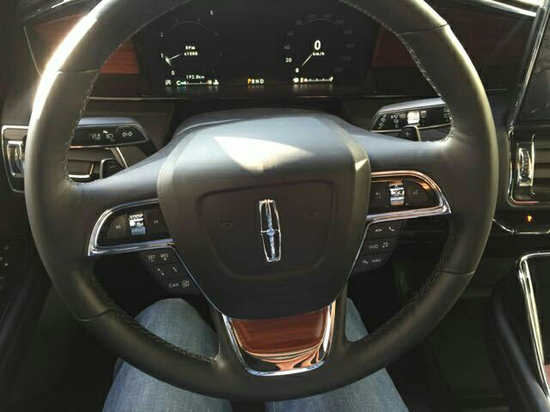 2018 款林肯领航员新款三幅式多功能方向盘带加热功能,真皮包裹方向盘兼具温润触感与典雅质感,三幅式设计令操控更加得心应手,在尊崇气息之上平添一分动感魅 力。真皮部分可在短时间内加热,即便在寒冷的天气状况下,也能保持对温度的掌控感。内饰豪华气派,做工精细。车内大量皮质和实木材覆盖,让人即刻尊享定制 体验。新款林肯领航员采用12英寸全液晶的仪表盘,悬浮式显示屏,科技感十足。
